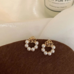 Gold Plated Korean Floral Pearl Studded Stud Earrings
